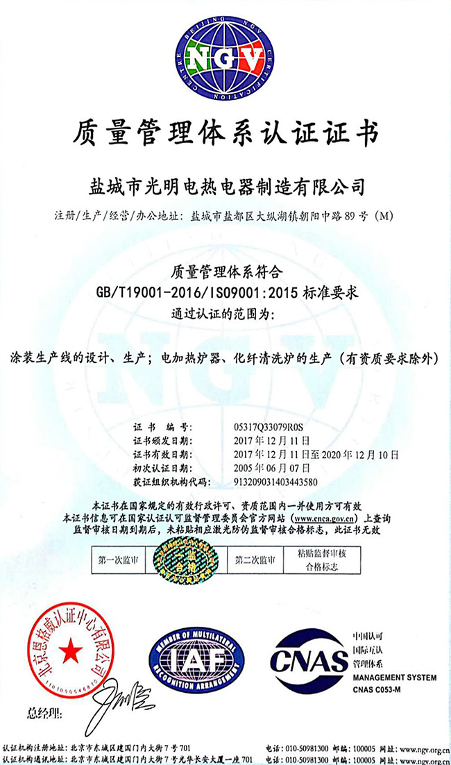 通過行業認證,為客戶提供可靠電加熱設備!